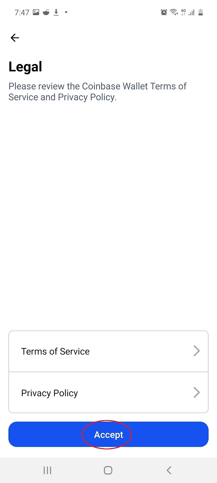 1.3 Review the legal terms and conditions by selecting ‘Accept’: