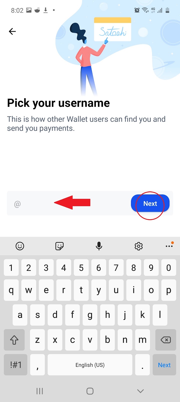1.4 Fill in your ‘@Username’ and select ‘Next’: