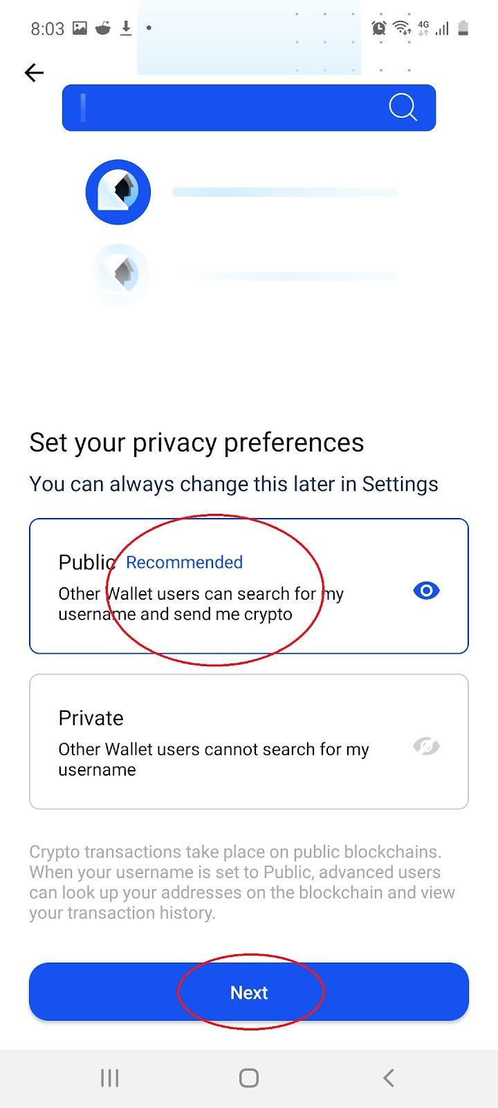 1.5 Choose a preference between ‘Public’ (recommended) or ‘Private’ and select ‘Next’: