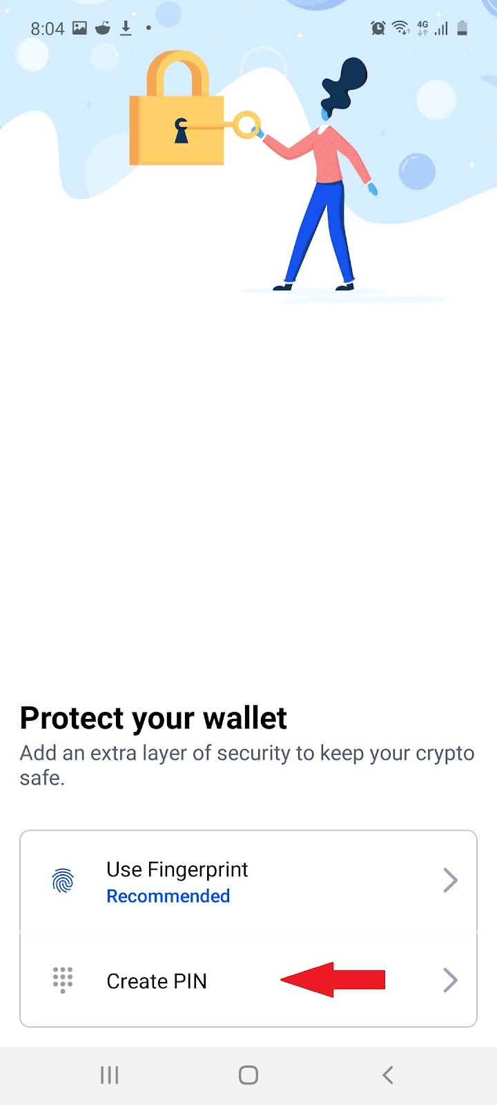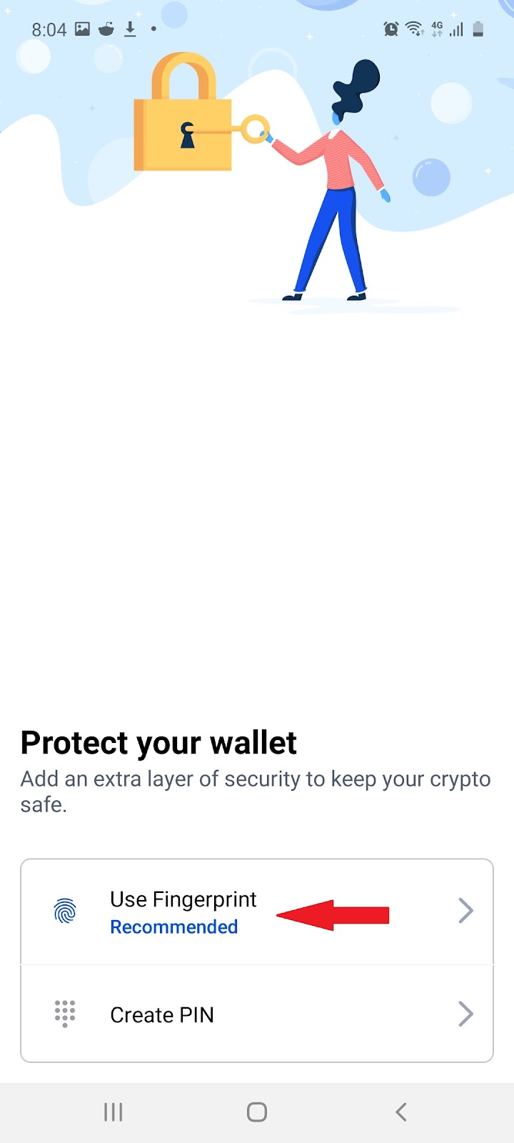 1.6 Choose a method of protection for your wallet by selecting ‘Use Fingerprint’ or ‘Create Pin’: