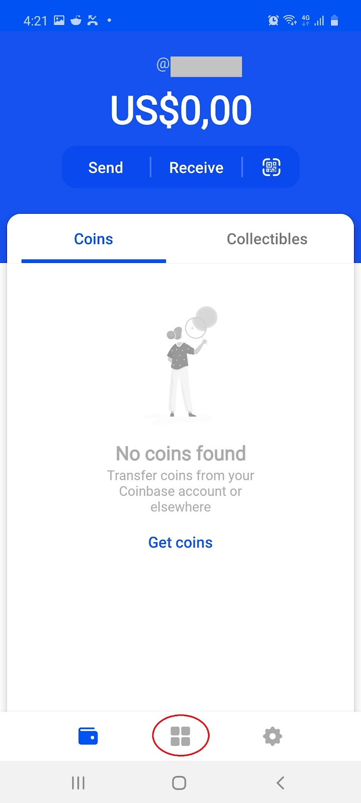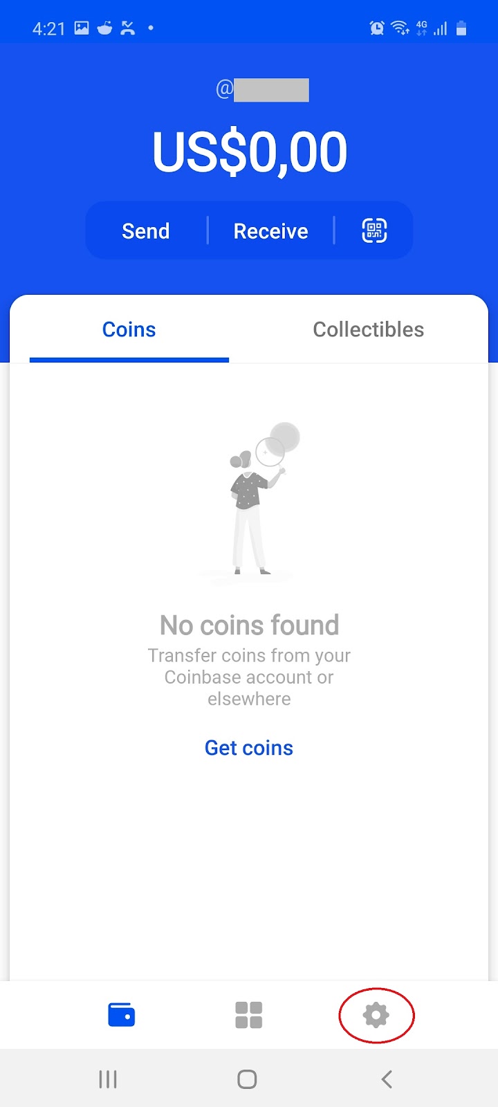 3.1 On the home page of wallet, select the ‘Settings’ icon: