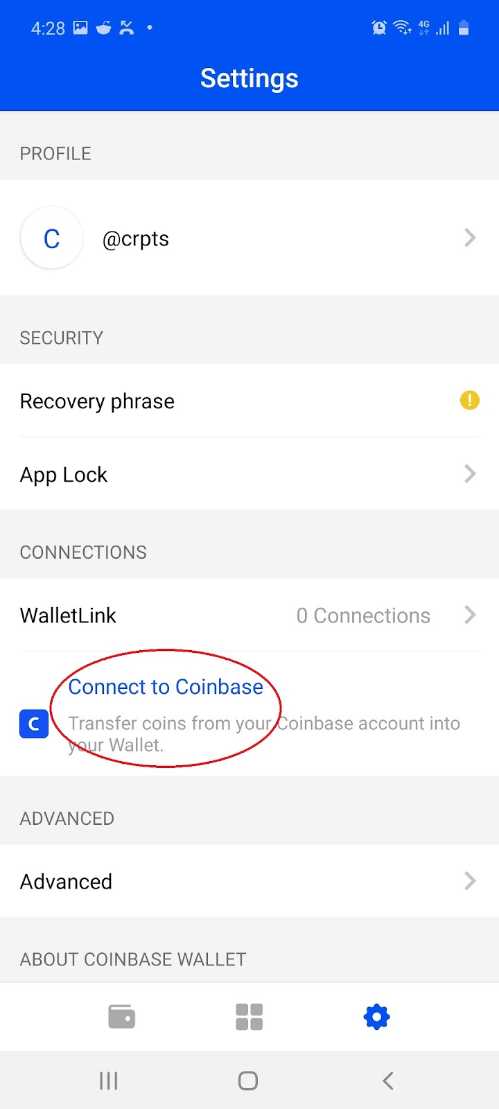 3.2 On the Settings page, select ‘Connect to Coinbase’: