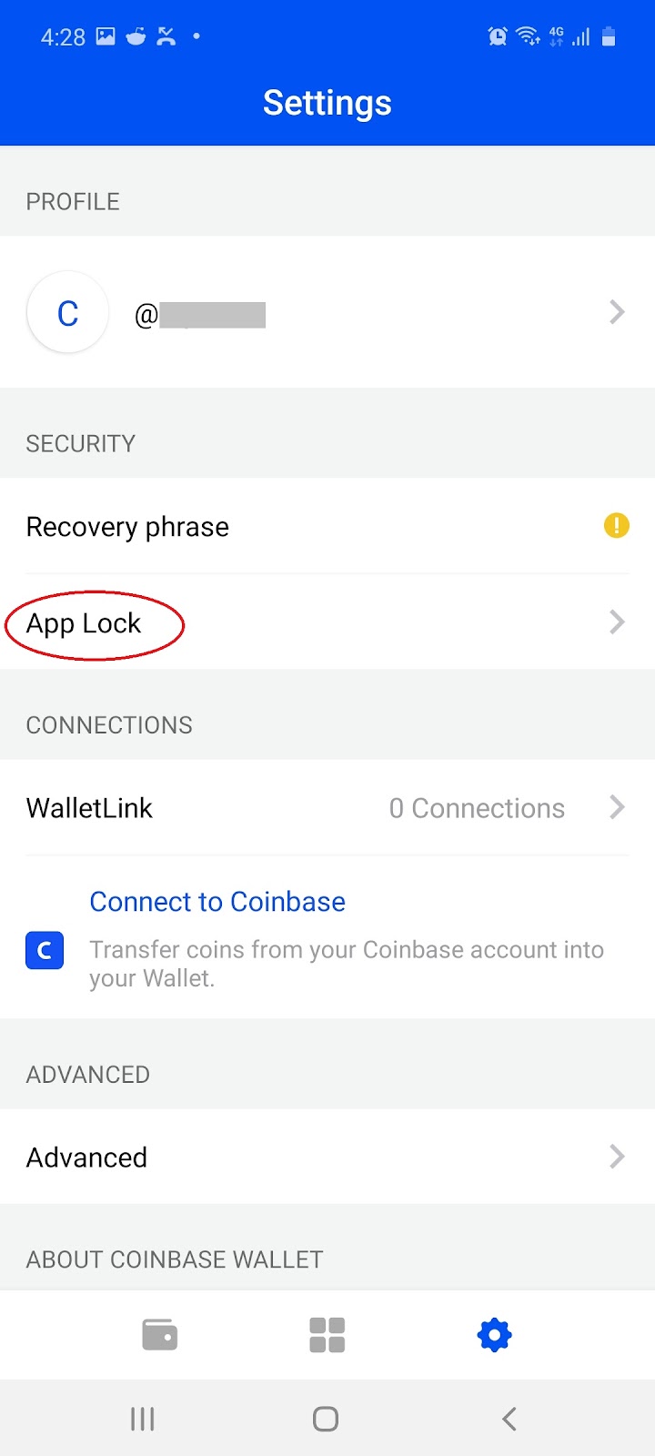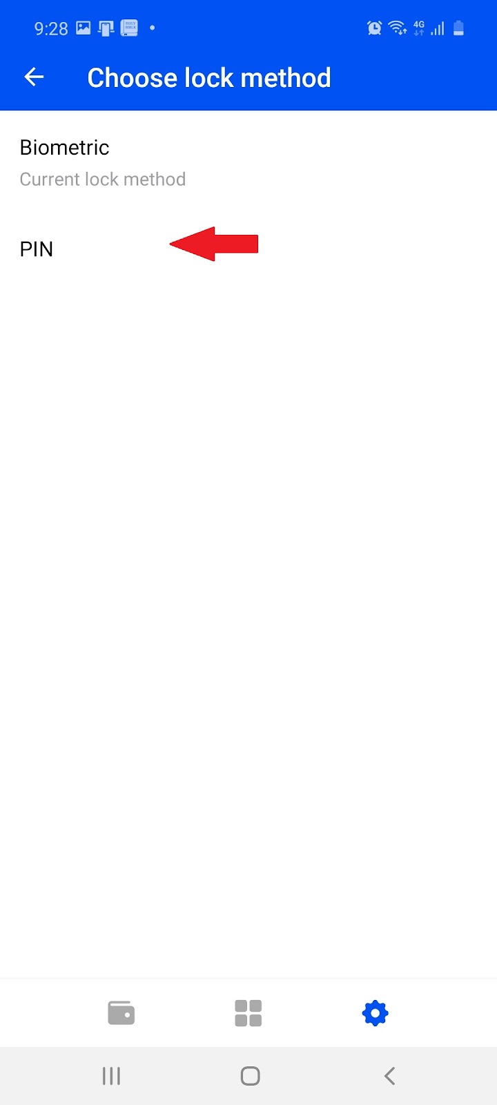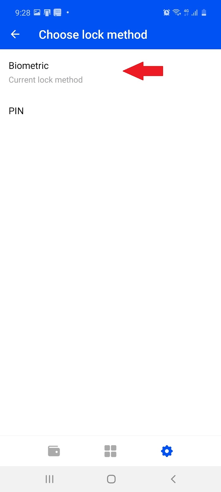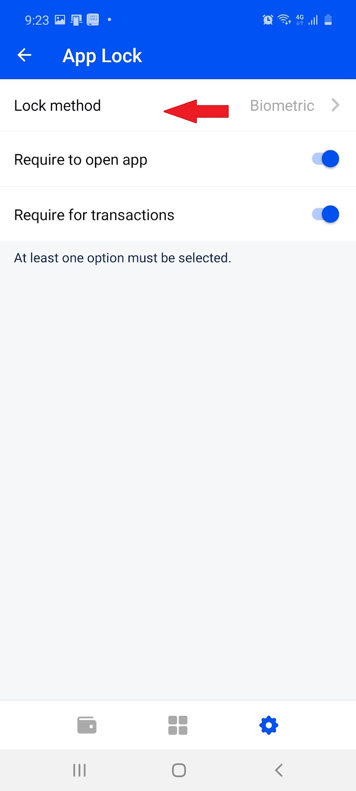 6.3 On the App Lock page of wallet select ‘Lock Method’: