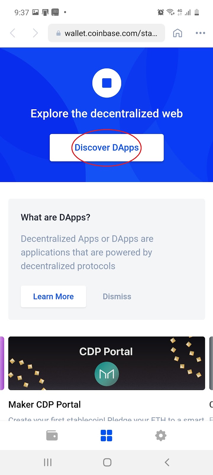 7.1 Select ‘DApps browser’ icon and then select ‘Discover DApps’ to learn more: