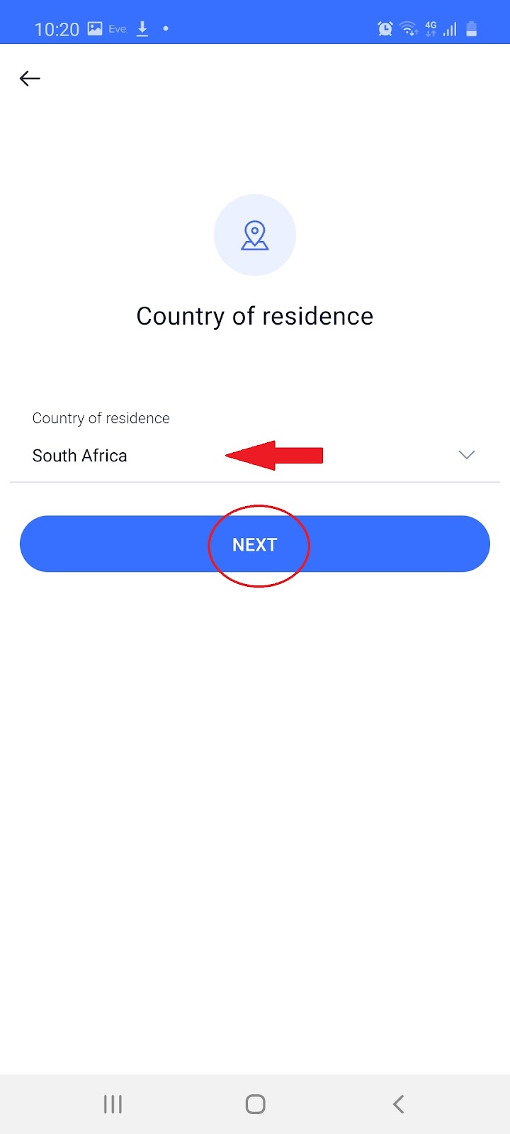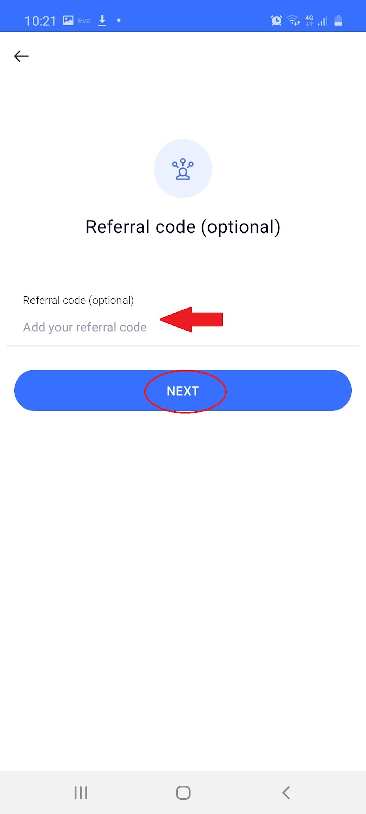 1.3 Select your country of residence press ‘Next’, add a Referral code and press ‘Next’: