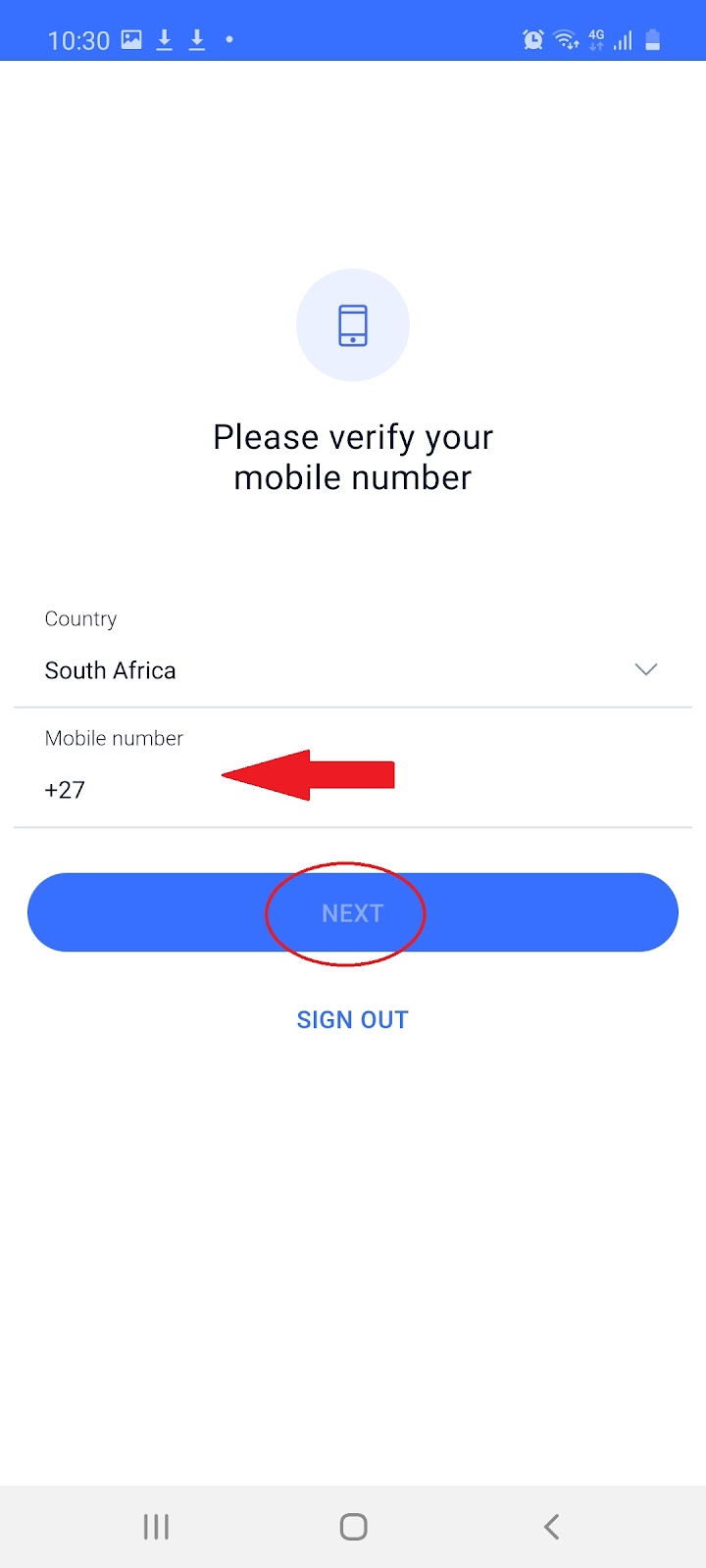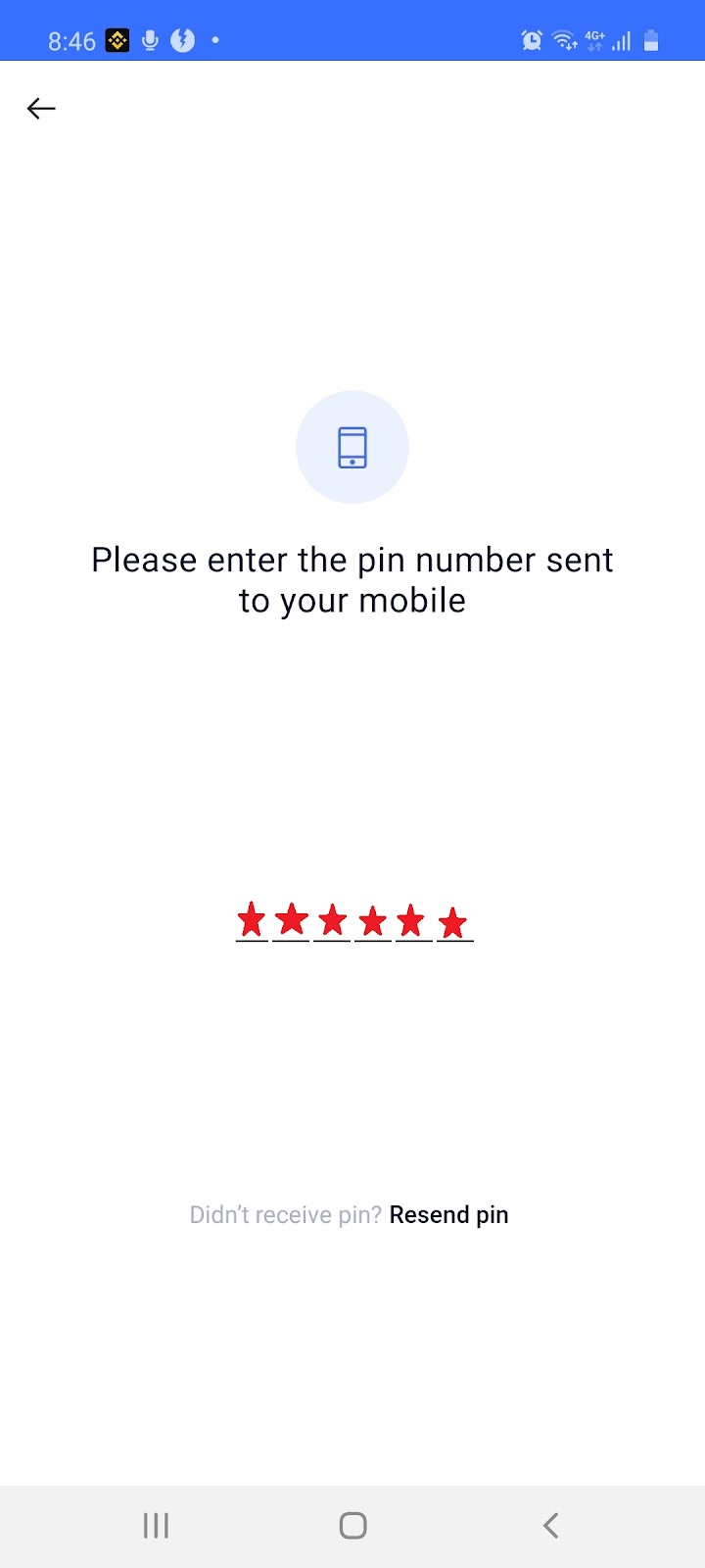 1.8 Enter your mobile number, click ‘Next’ and enter the 6-digit pin sent to your mobile: