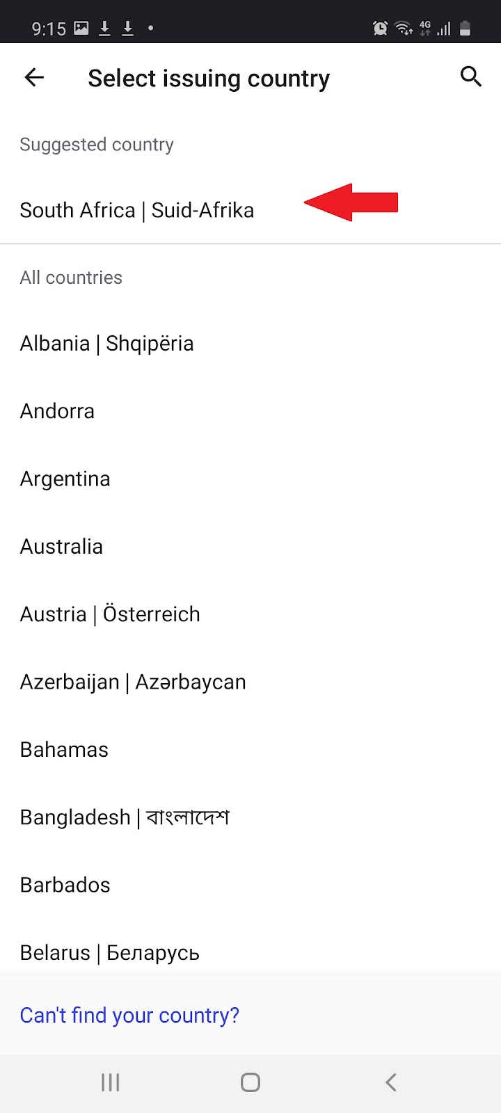 1.10 Select a document you would like to verify and select the issuing country: