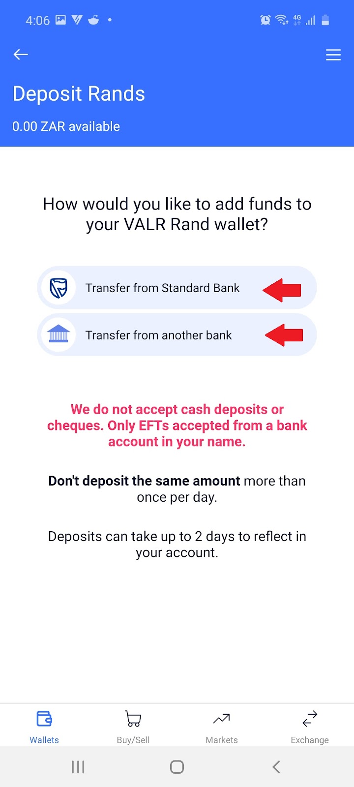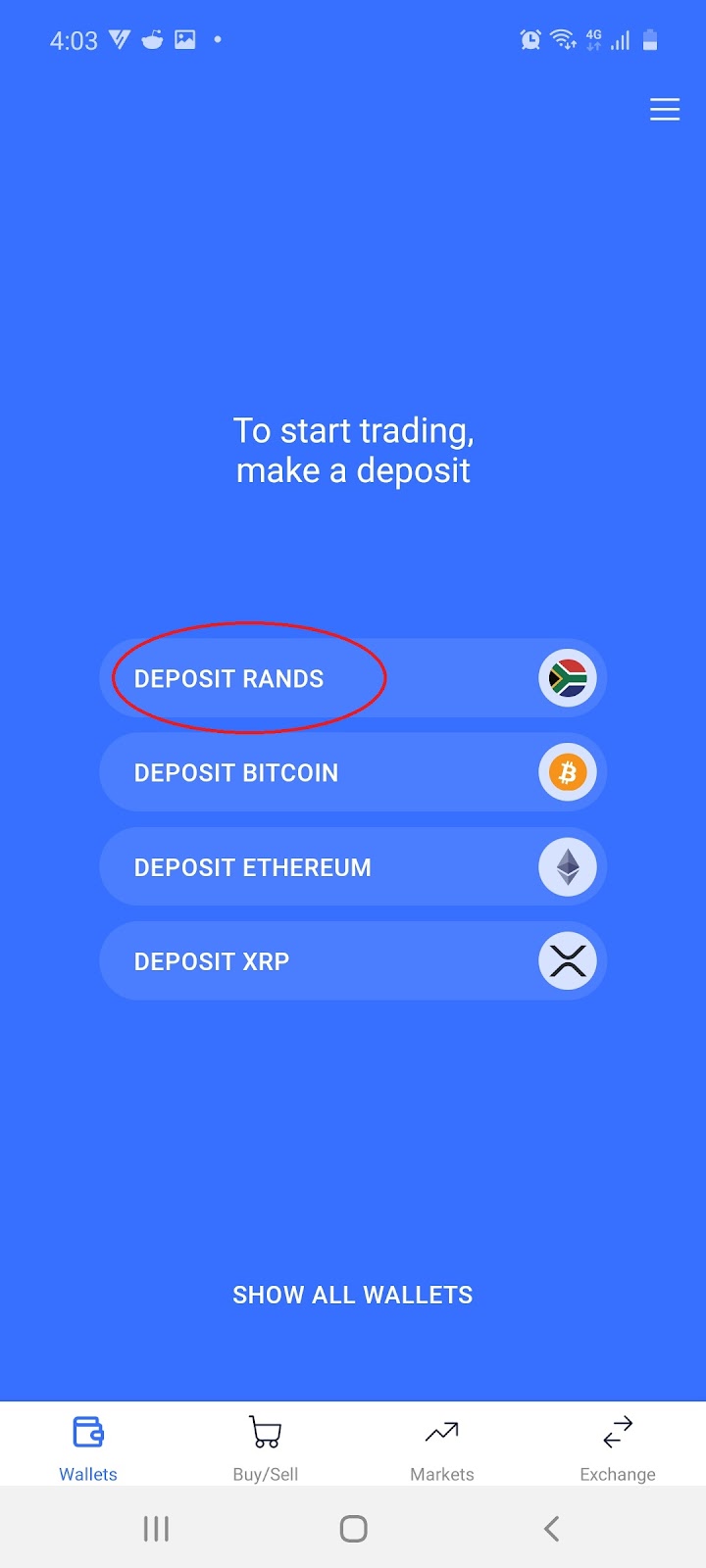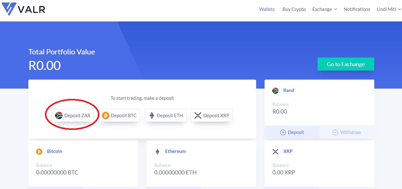 2.1 Sign into your desktop or mobile account and select ‘Deposit ZAR’: