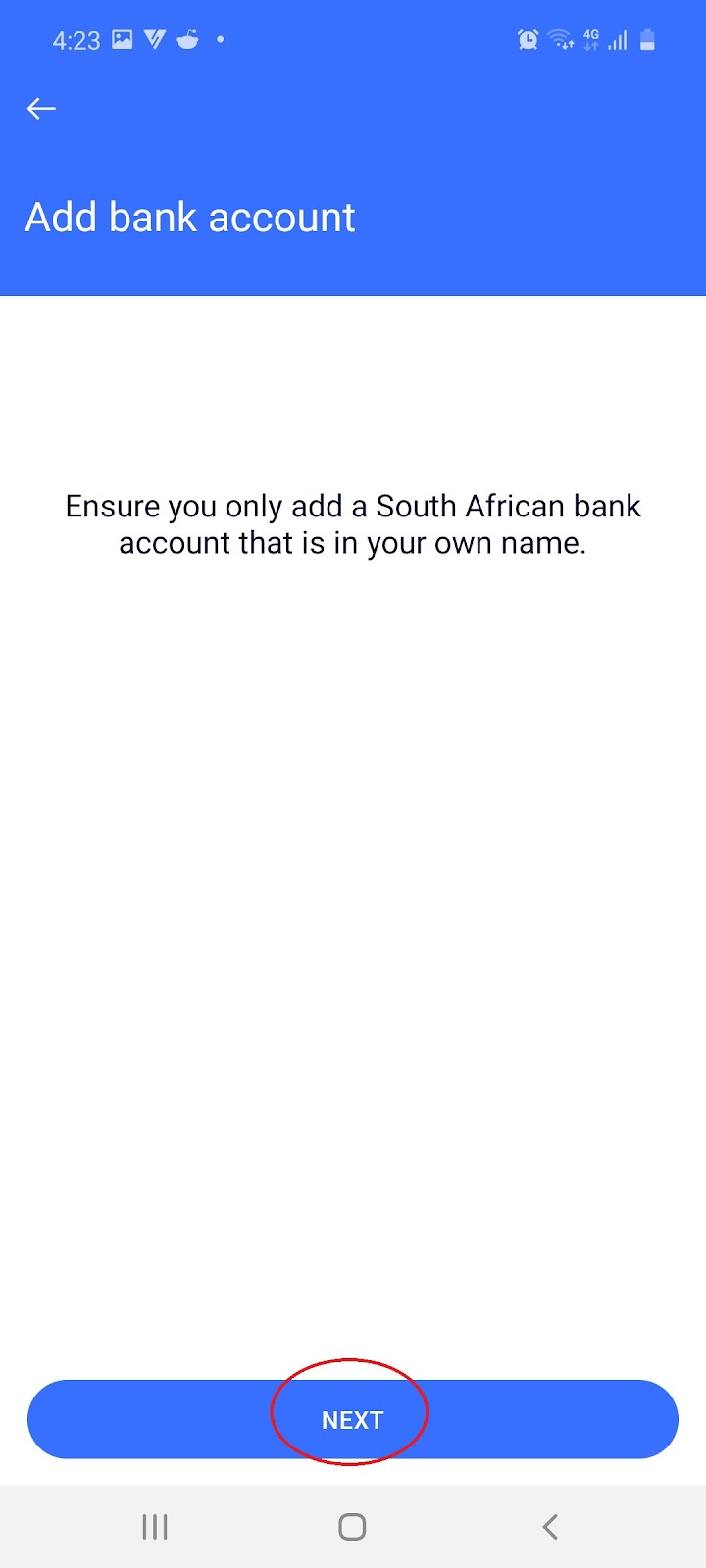 2.5 To add your Bank Account (available to South Africa only):