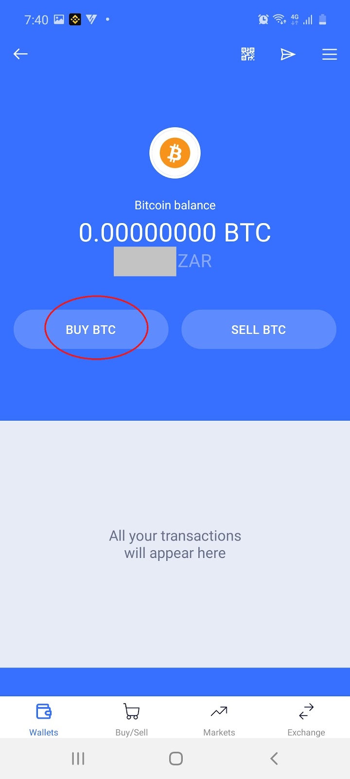3.1 On your wallets page select to buy Bitcoin and then select ‘Buy BTC’: