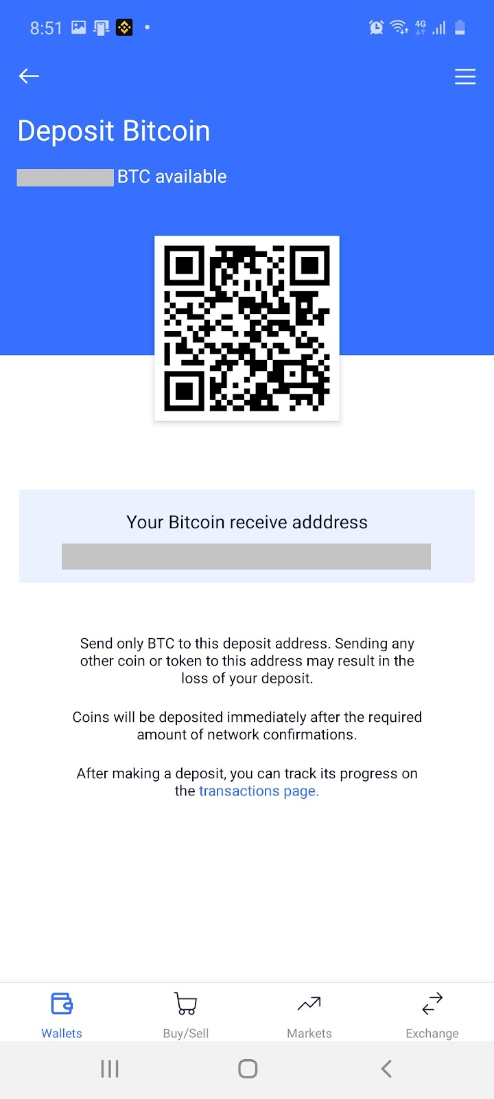 Note: You can receive Bitcoin via scanning your QR code or sharing your address. It takes some time for blocks to be validated, so your received Bitcoin will take a while to appear.