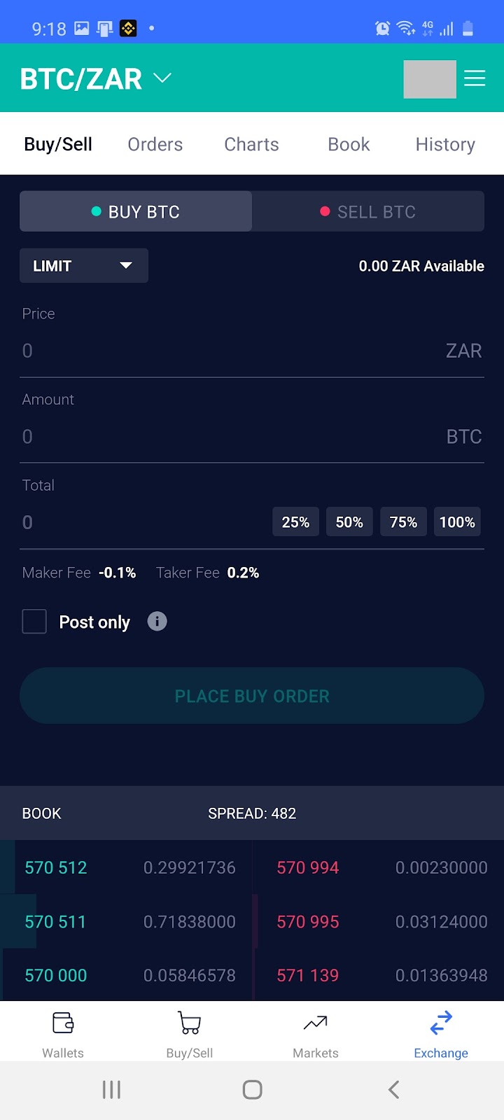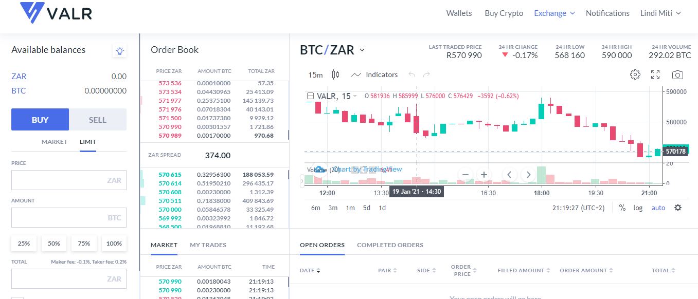 Note: The VALR exchange is an advanced trading platform that allows users to choose to buy or sell cryptocurrency at a specific price, rather than at the current ruling price.