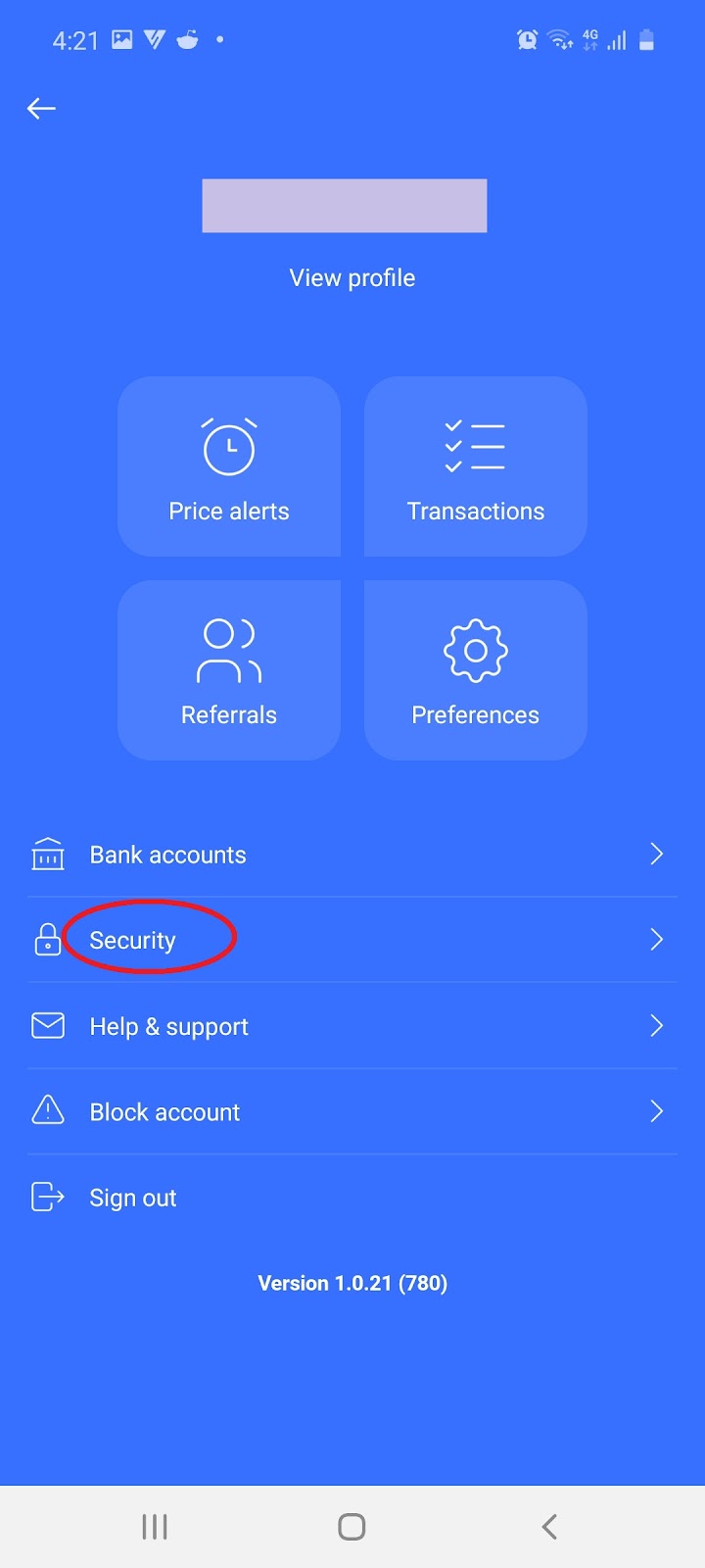 Note: If using your desktop, first select ‘Settings’ and then ‘Security’ .