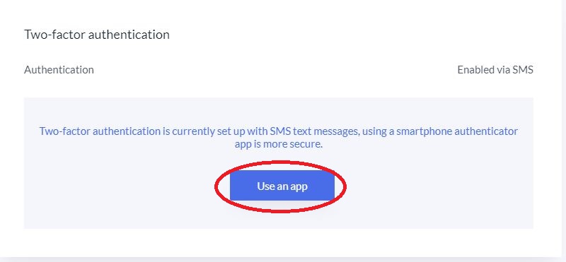 Note: Two-factor authentication is currently set up with SMS text messages, using a smartphone authenticator app is more secure. To change to app-based authenticatication you will be prompted for a 6-digit pin via SMS.