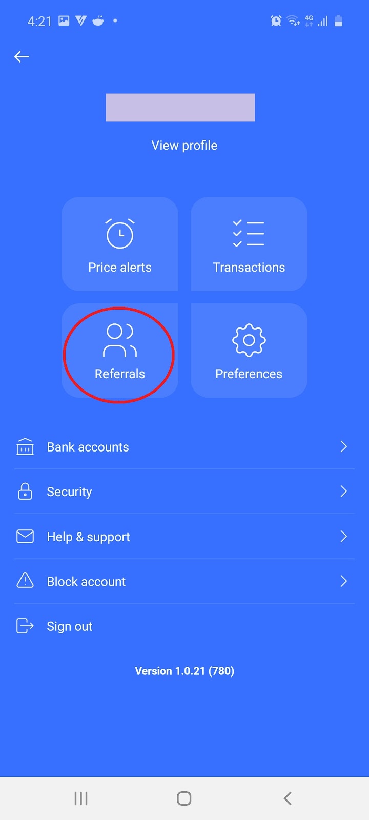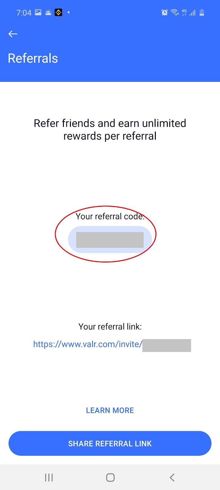 10.2 Select ‘Referrals Icon’ and your referral code will appear: