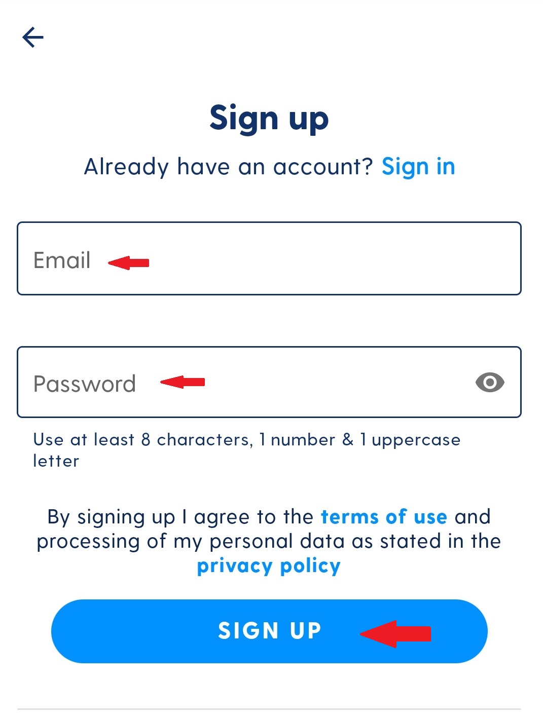 1.2 Once on the landing page, select ‘Sign Up’ and enter email and password: