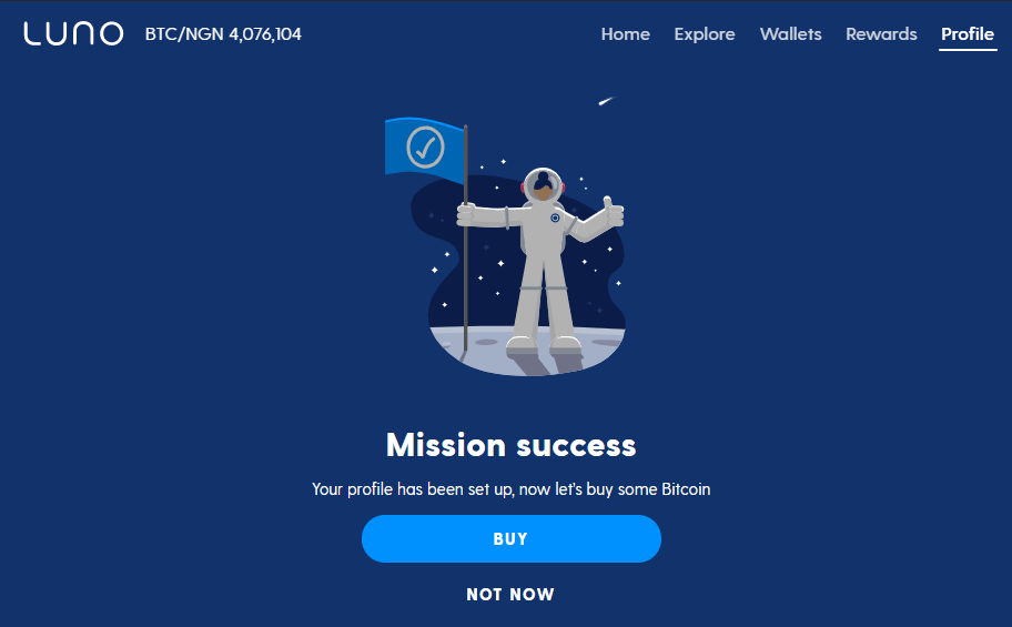 1.7 Next, fill in your profile, confirm the information and your Luno profile is complete:
