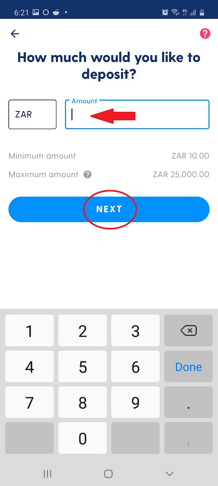 2.5 Fill in how much you would like to deposit and select ‘Next’: