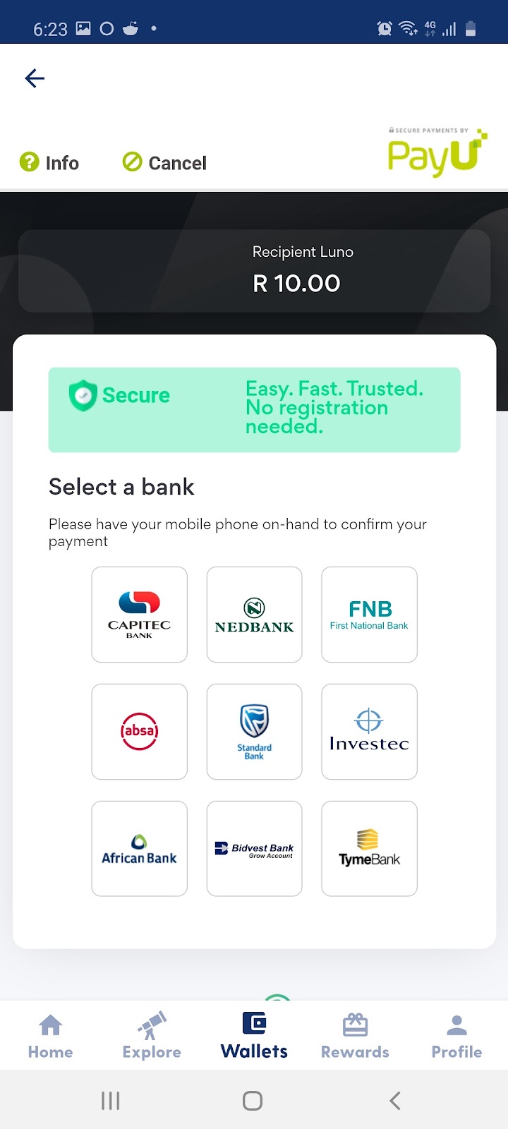 2.7 You will be redirected to PayU to do an instant EFT from your bank account: