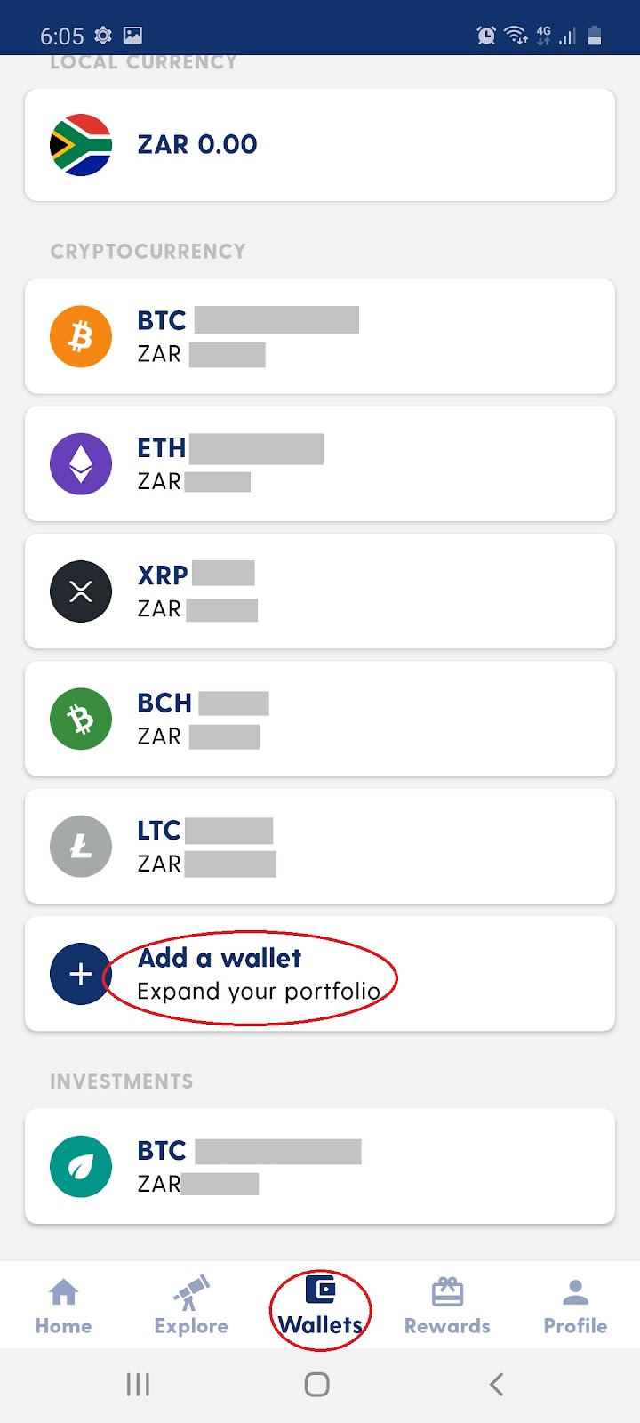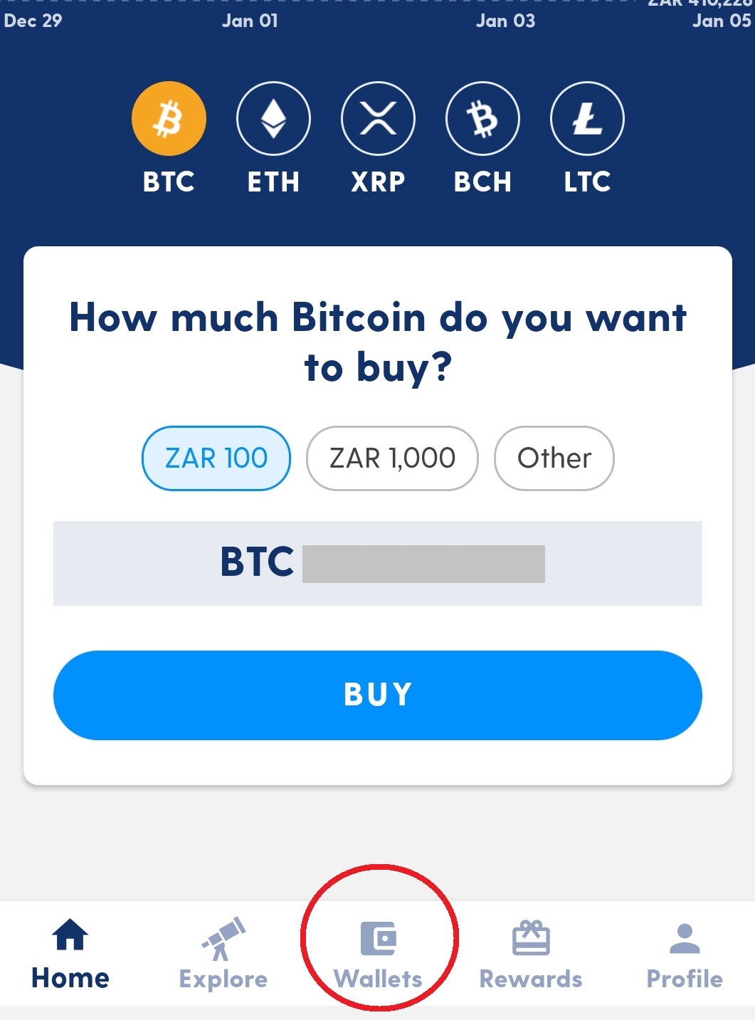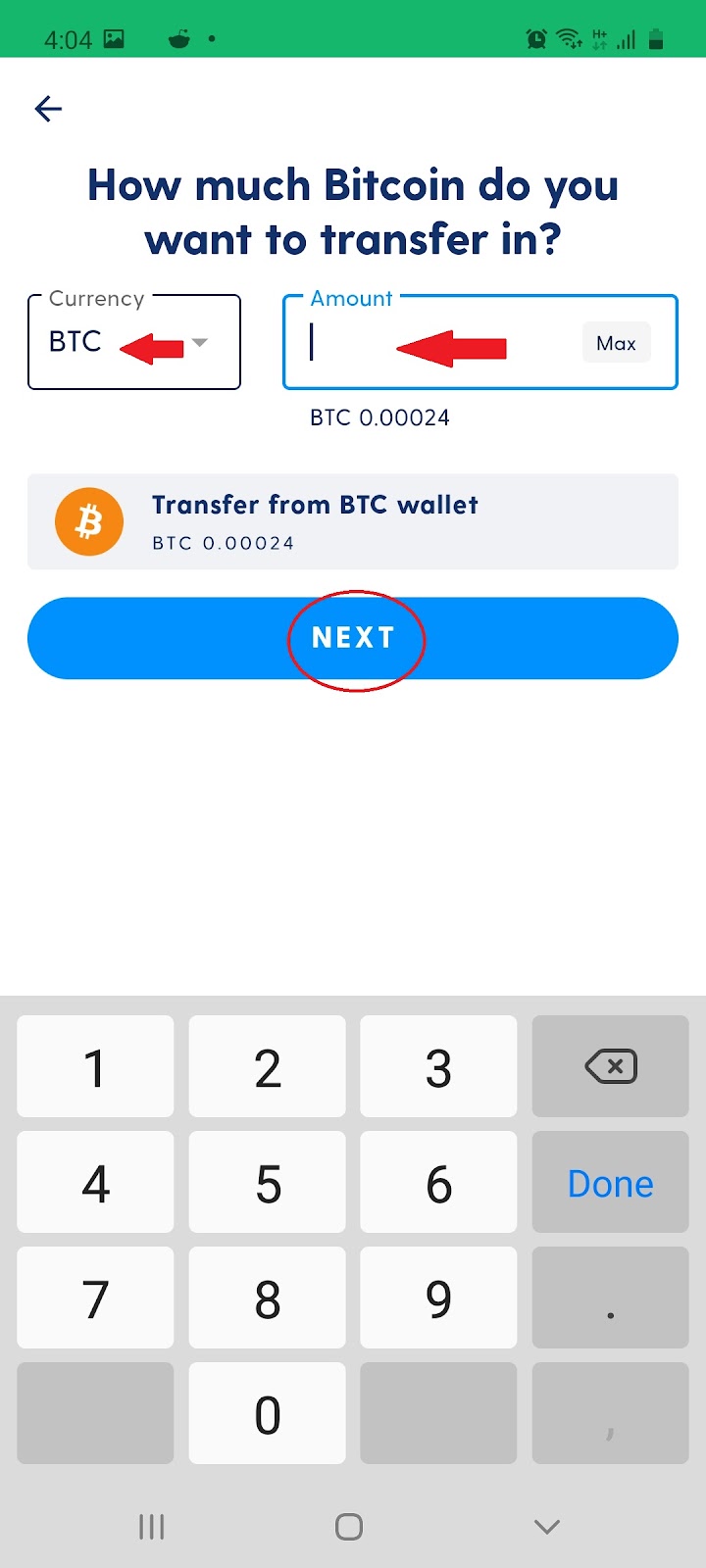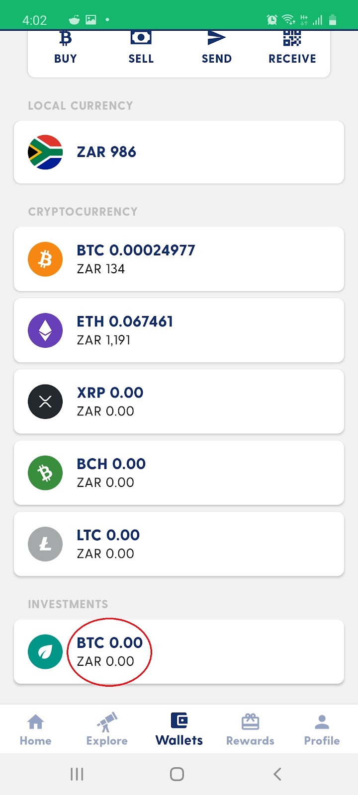 12.1 On wallet landing page select the ‘BTC’ icon under investments: