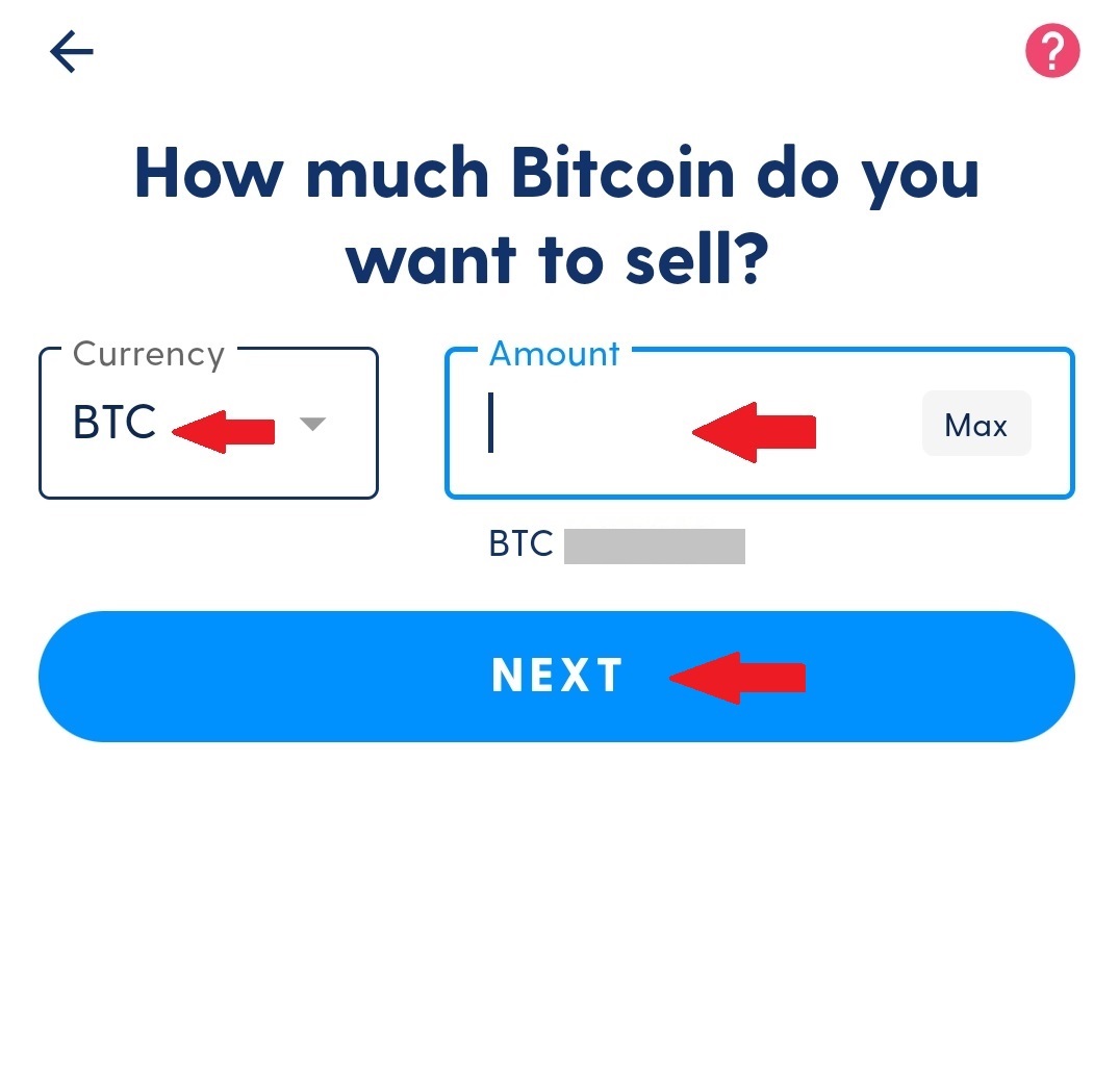 4.3 From the pop up choose the cryptocurrency you would like to sell (e.g. Bitcoin):