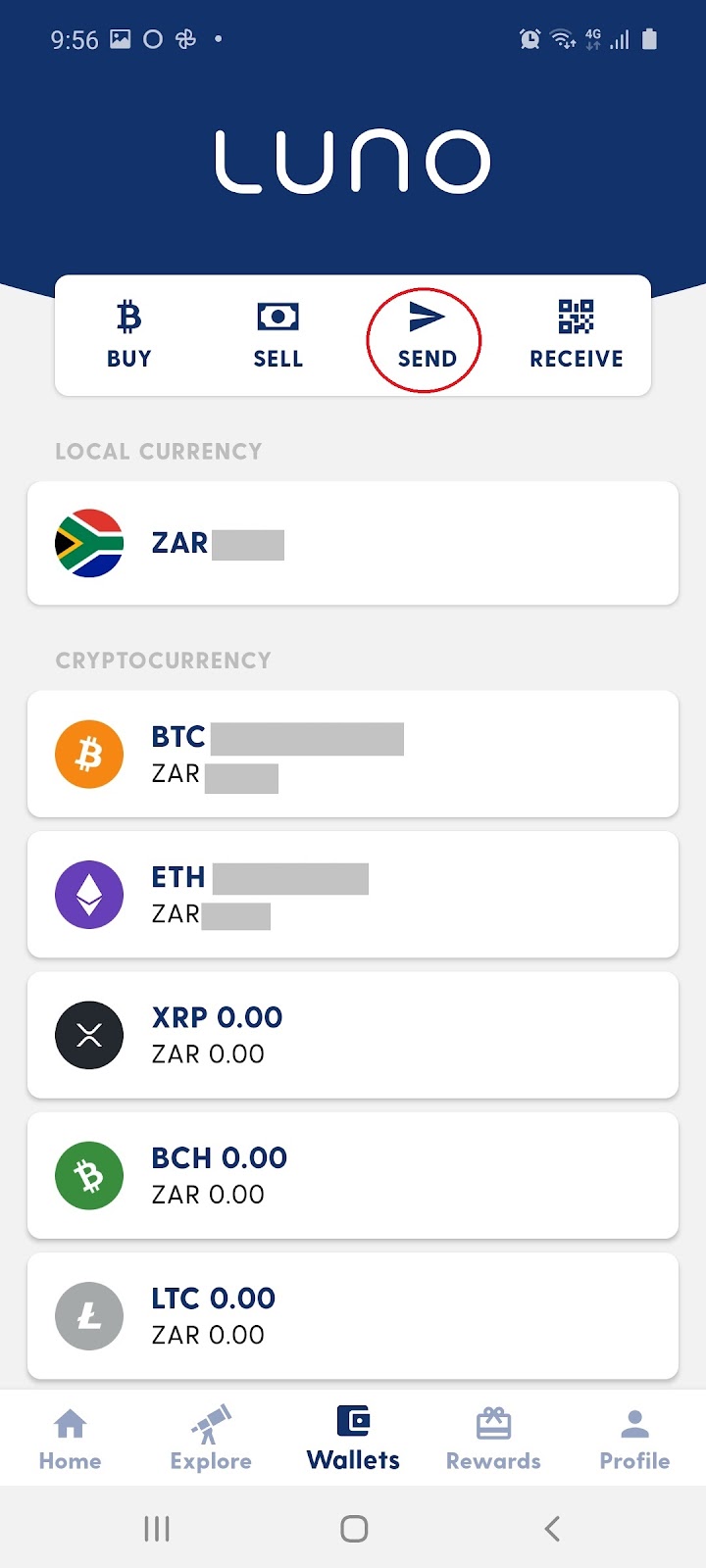 5.1 From the wallet landing page select the ‘Send’ icon: