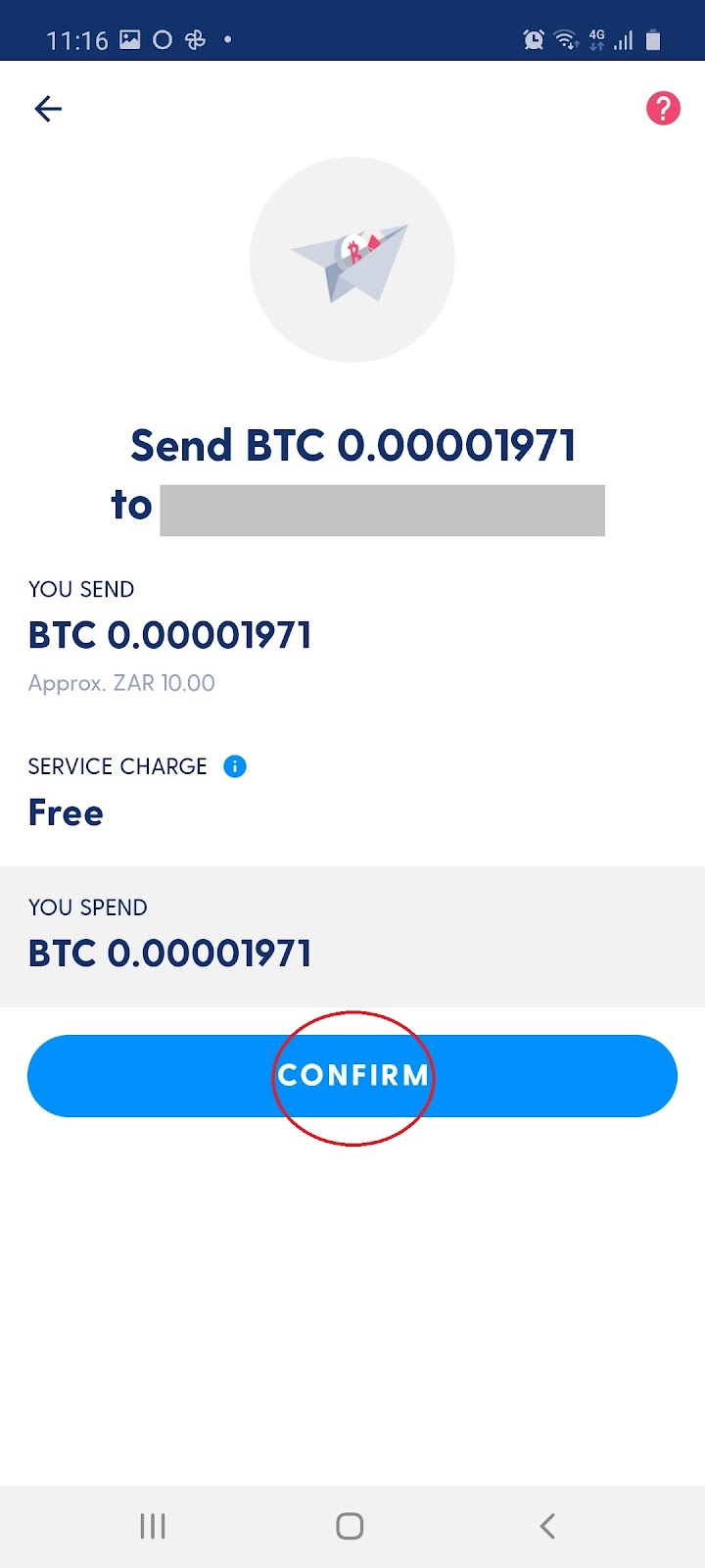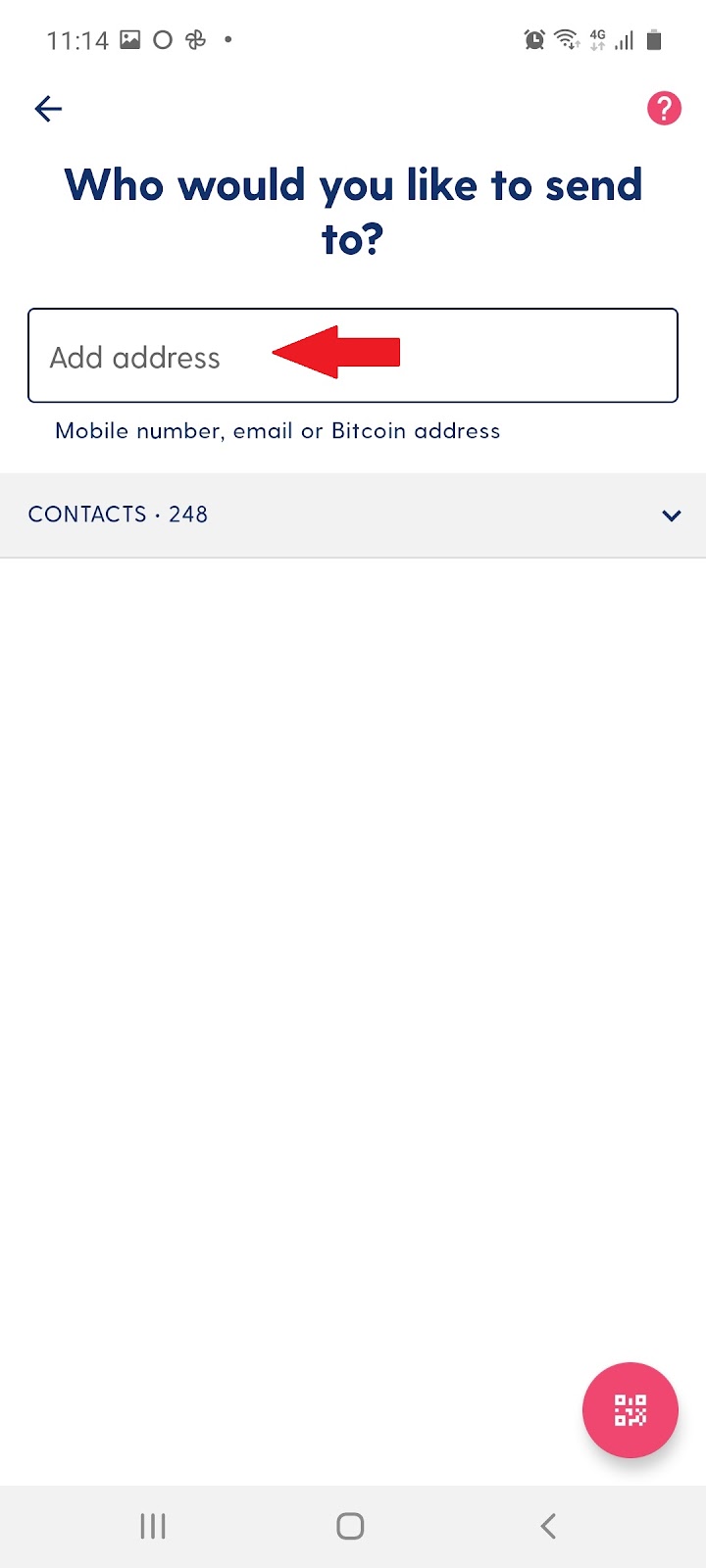 5.3 Select who to send to via email, mobile or Bitcoin Address (recommended):