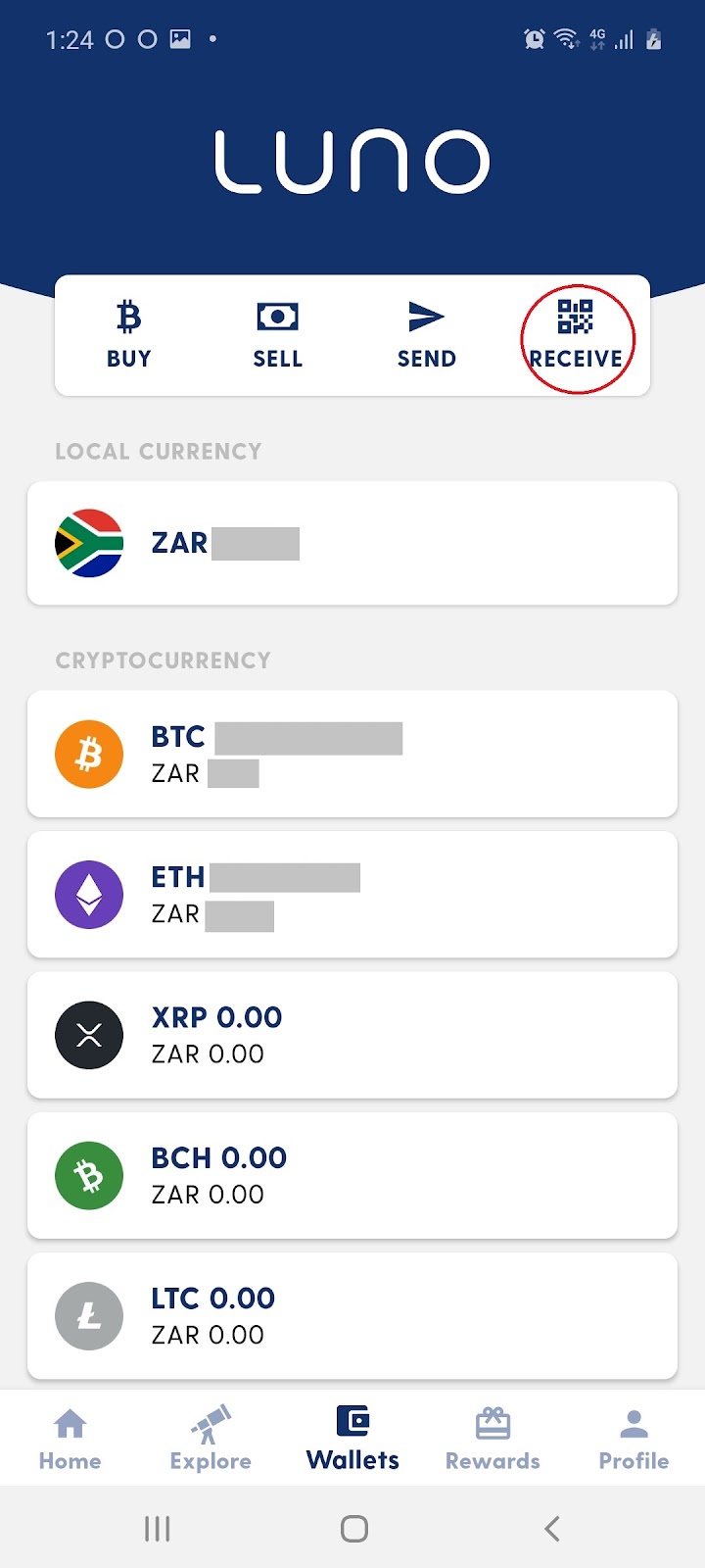6.1 From your wallet landing page, select the ‘Receive’ icon: