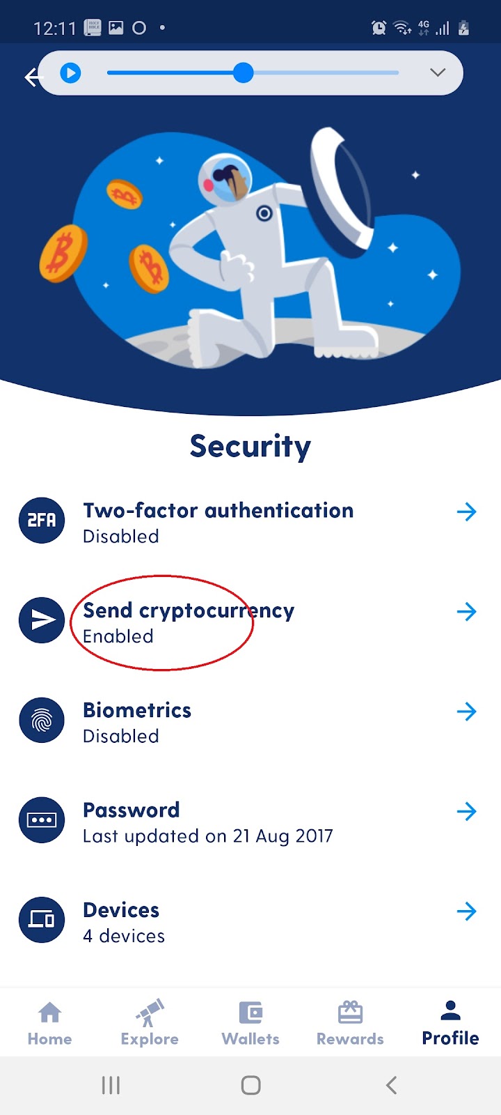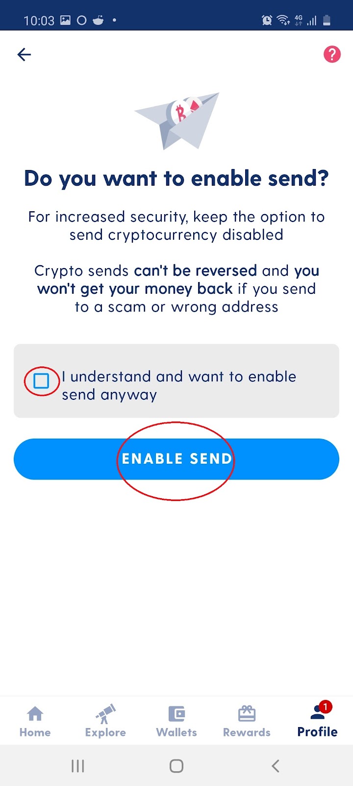 B. To enable sending of cryptocurrency select ‘Send Cryptocurrency’ and ‘Enable Send’: