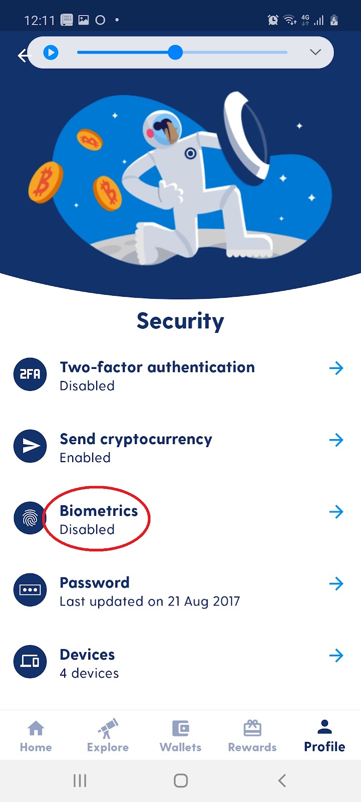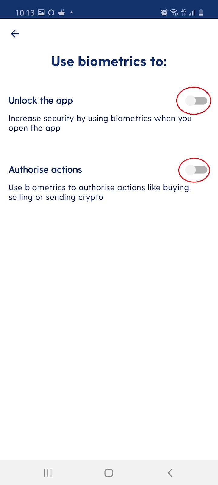 C. To enable biometrics select ‘Biometrics’, ‘Unlock the app and ‘Authorise actions’ :