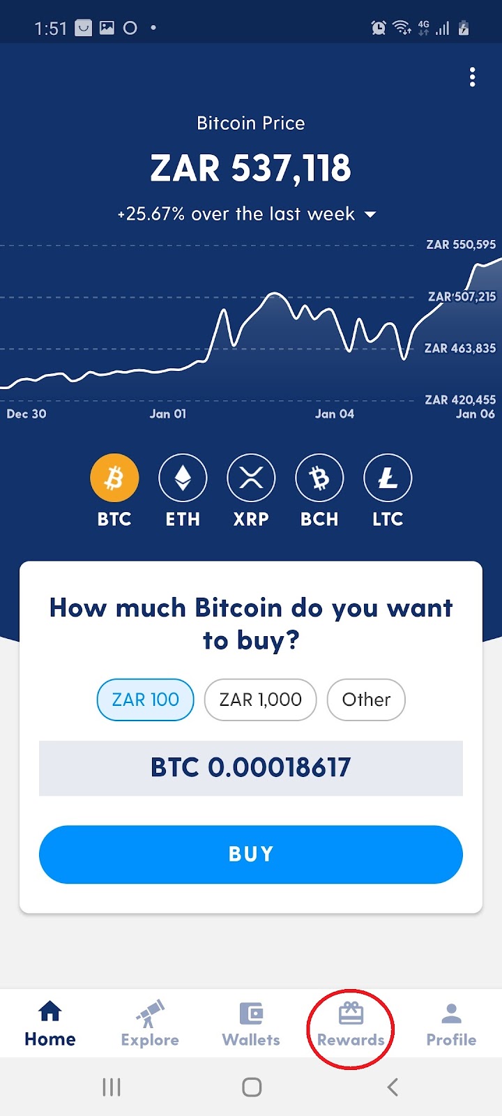 Note: Rewards tab allows you to share the app by inviting your friends. In doing so, you can earn yourself and your friends free satoshis.