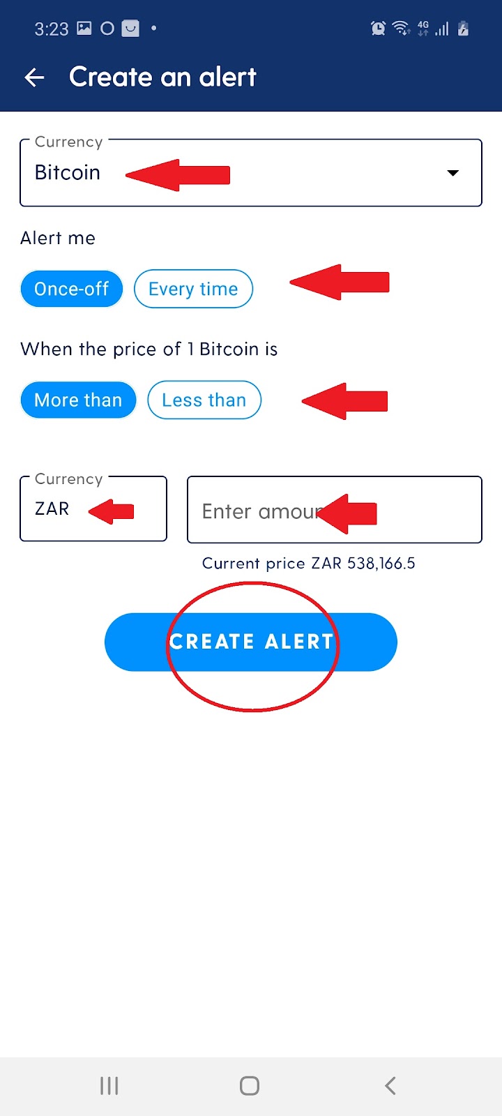 11.3 Fill in the currency, frequency, more or less than, amount and press ‘Create Alert’: